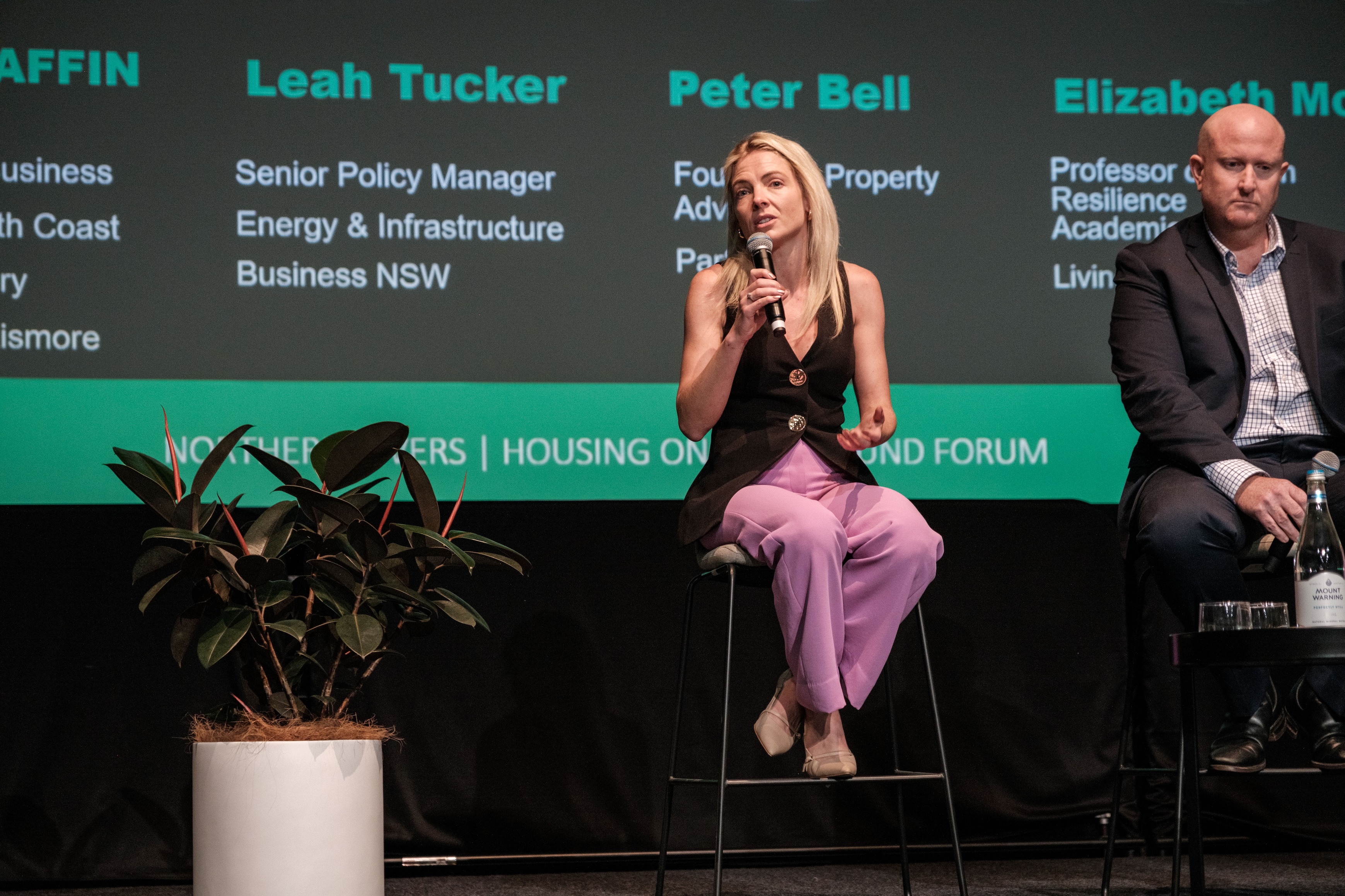 Elizabeth Mossop, Professor of Urban Resilience, Academic Director Living Lab Northern Rivers, challenged the room to rethink how we design housing in regional Australia, with a focus on climate resilience, liveability and the immediate urgency for key worker housing.